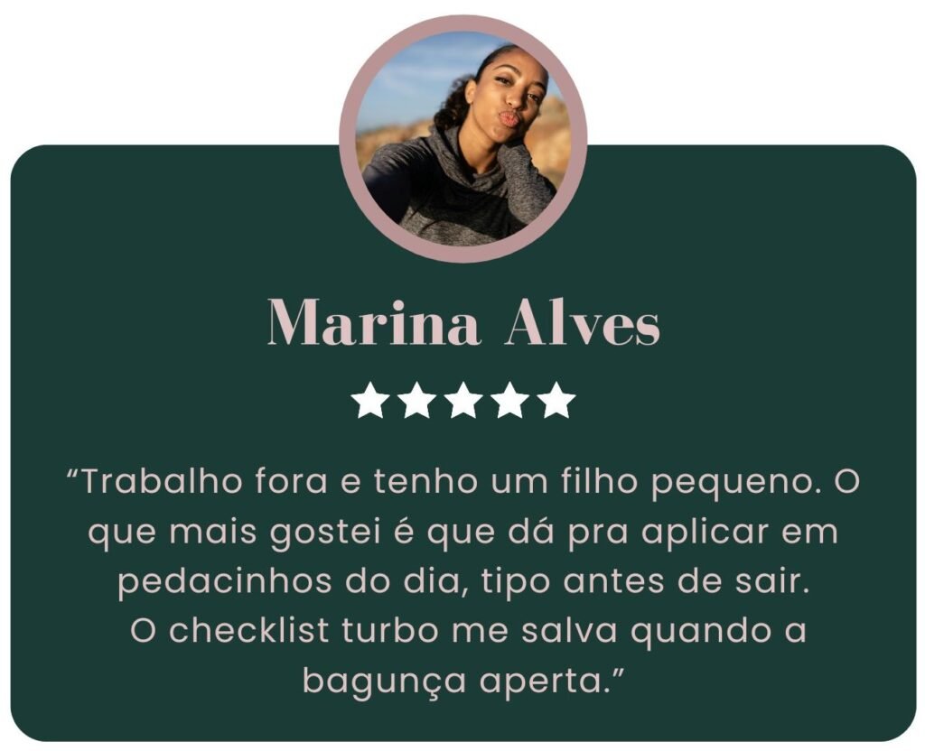 Com os checklists bônus, você cria uma rotina leve e possível, que cabe na correria da vida real.