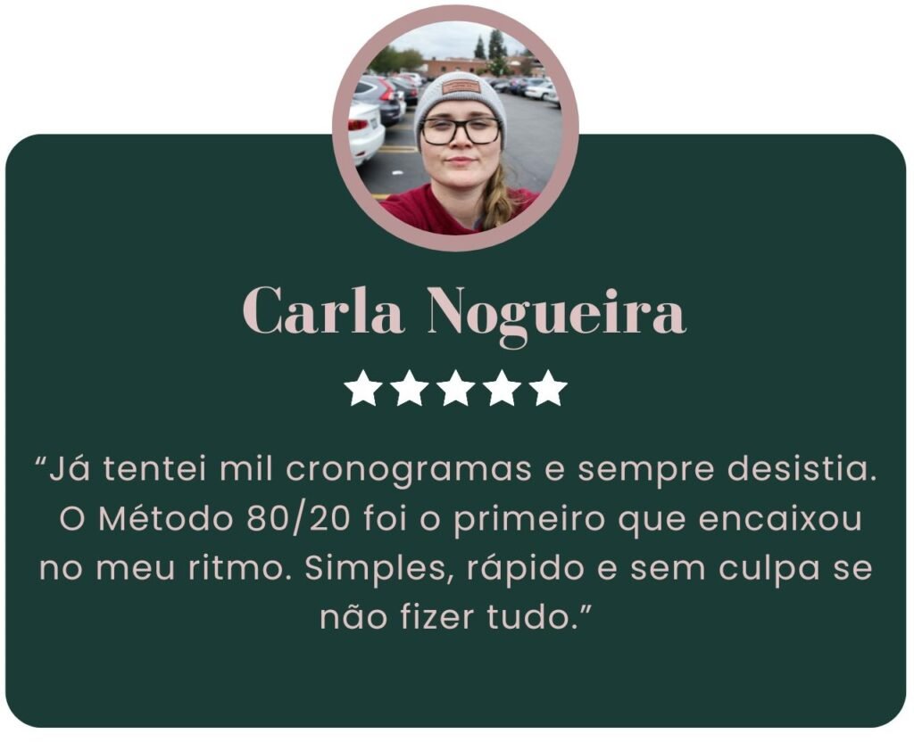 Foi justamente daí que nasceu o Método 80/20 — pra mudar o jeito de cuidar da casa, sem exigir mais tempo (nem mais energia) de você.